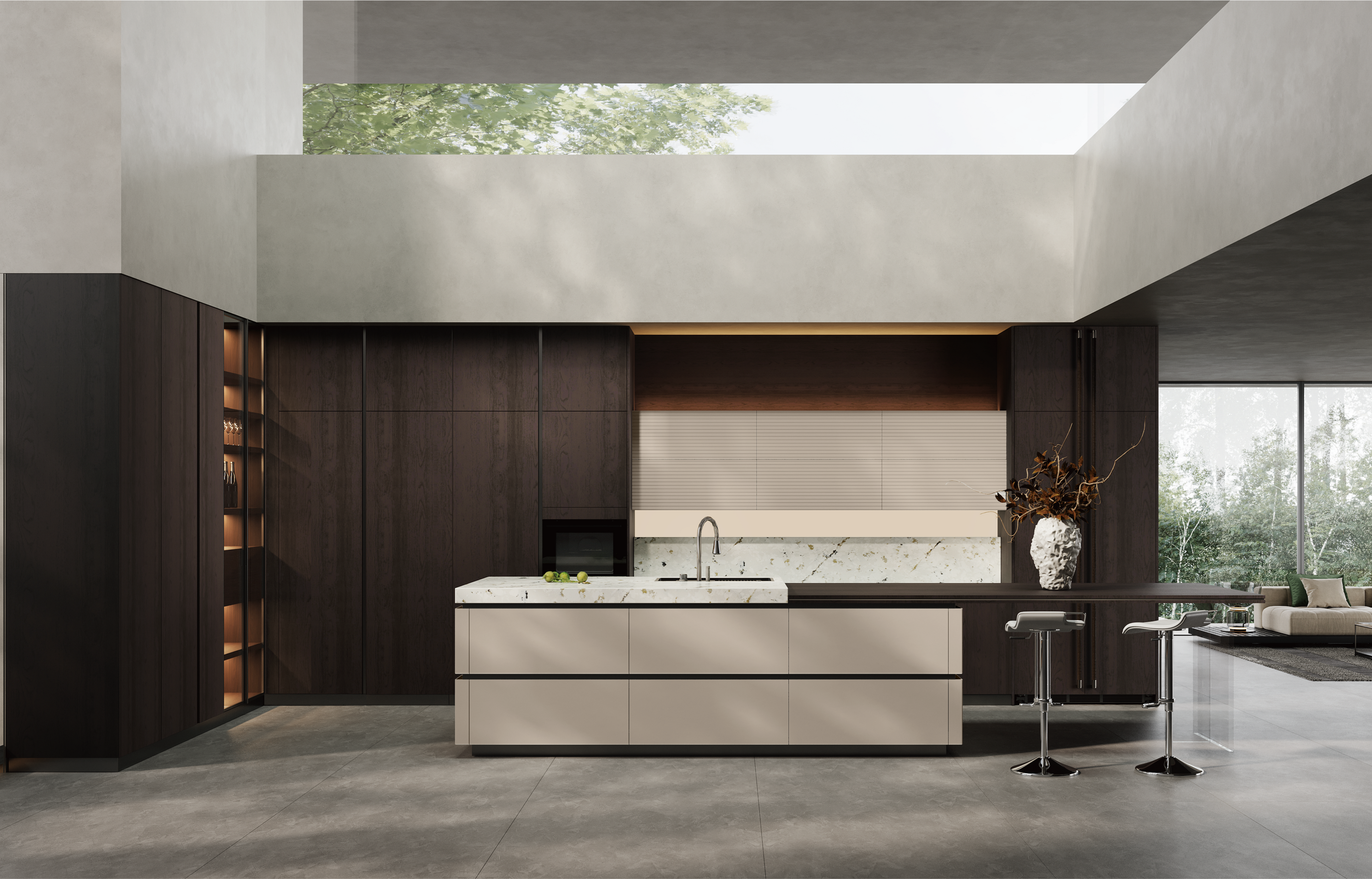通过9599九五至尊厨柜量体裁柜,定制出适合主厨下厨的烹饪区和洗涤区的舒适高度。